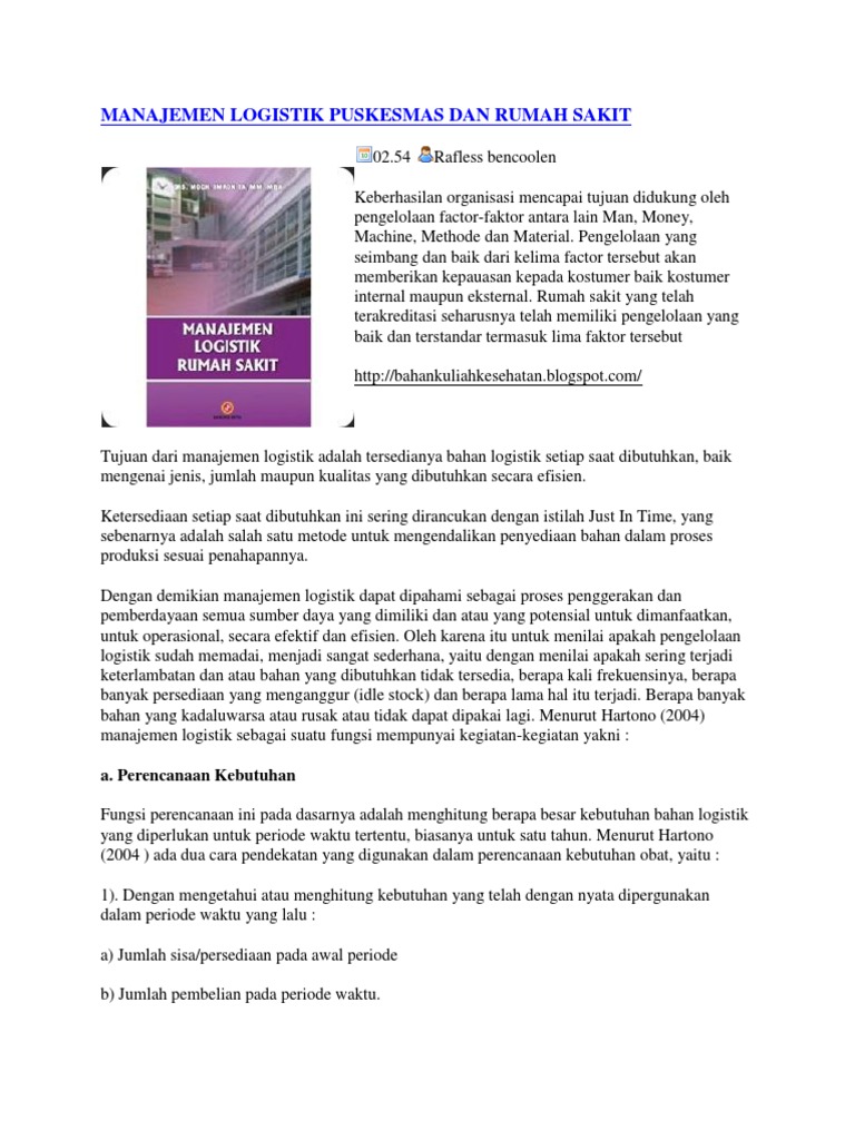 Manajemen Logistik Puskesmas Dan Rumah Sakit Pdf